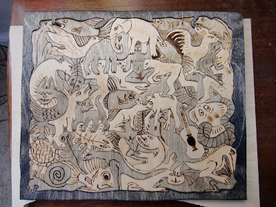Initial outline cut on my scroll saw (The whole piece is about the size of a 8.5 x 11 sheet of paper):