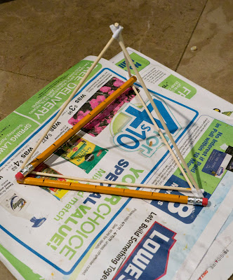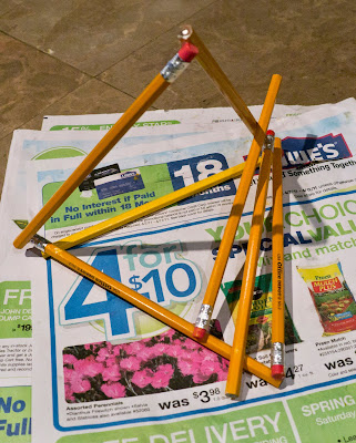 It's the middle of April and this next week all students at University Preparatory School, where I teach, will be taking the California standardized tests. So I decided to design and build a sculpture that I'm calling "Standardized Testing And Reporting" or "STAR", which is what the California testing program is named. The sculpture is made up of 80 pencils and is held together with a variety of glues.